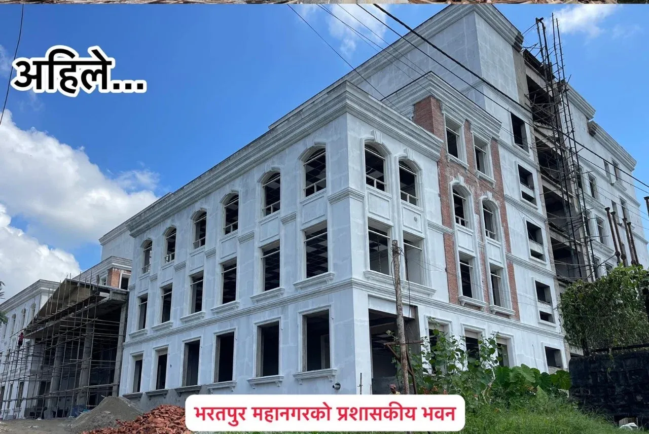 ९ वटा भवनबाट सेवा दिइरहेको भरतपुर महानगरपालिकाको ५३ करोडको भवन बन्दै,काम अन्तिम चरणमा