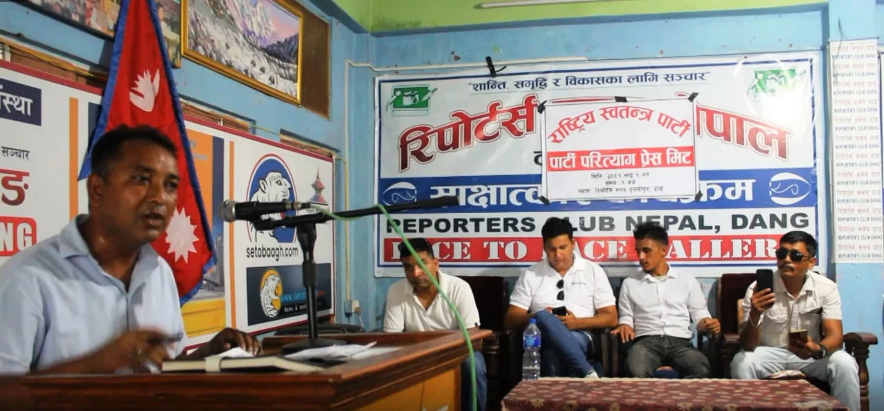 बुटवल,भदौ ३ । दाङमा राष्ट्रिय स्वतन्त्र पार्टी (रास्वपा)का ६० जनाभन्दा बढी युवाले पार्टी परित्याग गरेका छन् । सोमबार तुलसीपुरस्थित रिपोर्टस क्लबमा पत्रकार सम्मेलन गर्दै उनीहरुले पार्टी परित्यागको घोषणा गरेका हुन् ।
