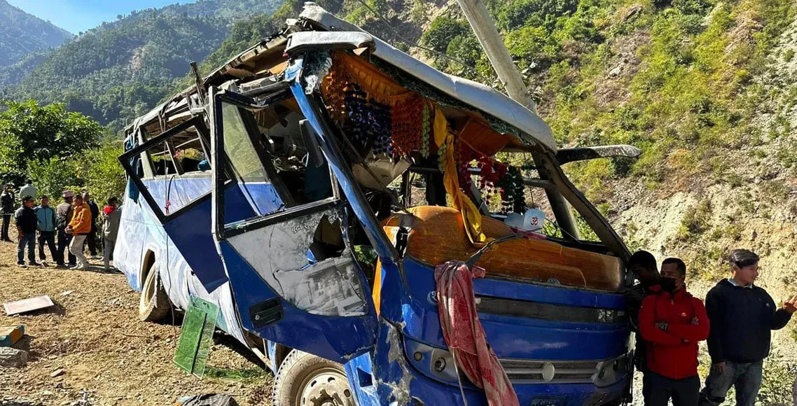 प्रदेश ३–०१ ००५ ख ९९६६ नम्बरको बस आज भेरी करिडोरअन्तर्गत रिठा नजिकै दुर्घटना हुँदा धादिङ खाग्री गाउँपालिका–१ का ३१ वर्षीय चालक खड्कबहादुर तामाङ, सोही गाउँपालिका–६ का २८ वर्षीय भीमबहादुर भुलन, रुकुम पश्चिमको आठबिसकोट–९ का ३१ वर्षीय प्रकाश गौतम, दोलखा भिमेश्वर नगरपालिका–७ का २६ वर्षीय प्रकाश मगराठी घाइते भएका जिल्ला प्रहरी कार्यालय रुकुम पश्चिमका सूचना अधिकारी, प्रहरी निरीक्षक ऋषि पाठकले जानकारी दिए।