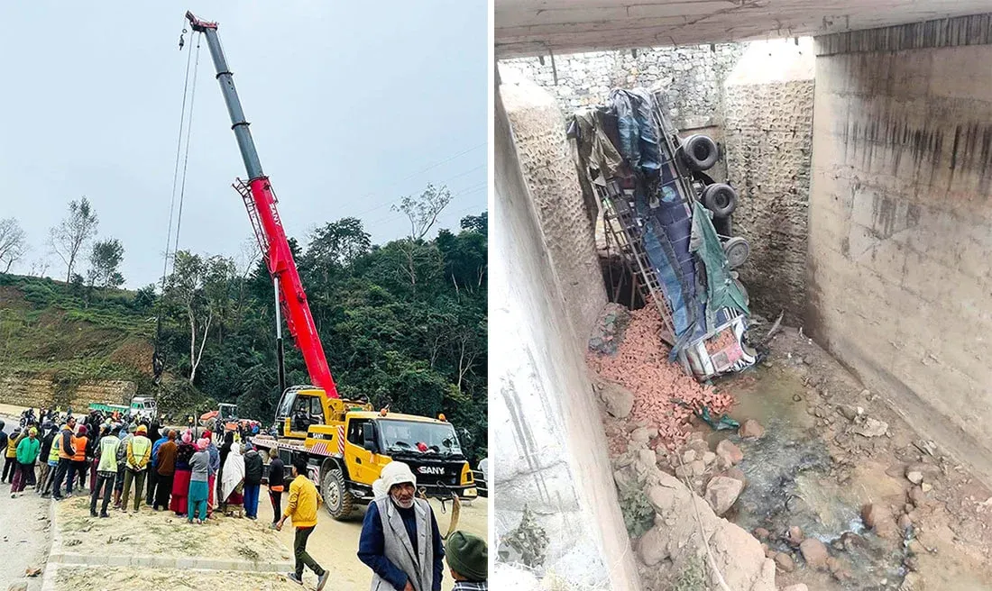 तनहुँमा जीपलाई ठक्कर दिएर पुलबाट खस्यो ट्रक, दुईजनाको मृत्यु