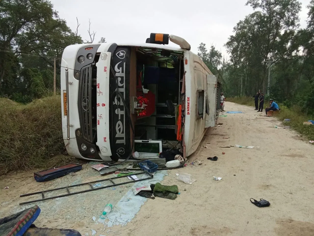 नवलपुरको विनियी त्रिवेणीमा यात्रुवाहक बस दुर्घटना, २३ जना घाइते
