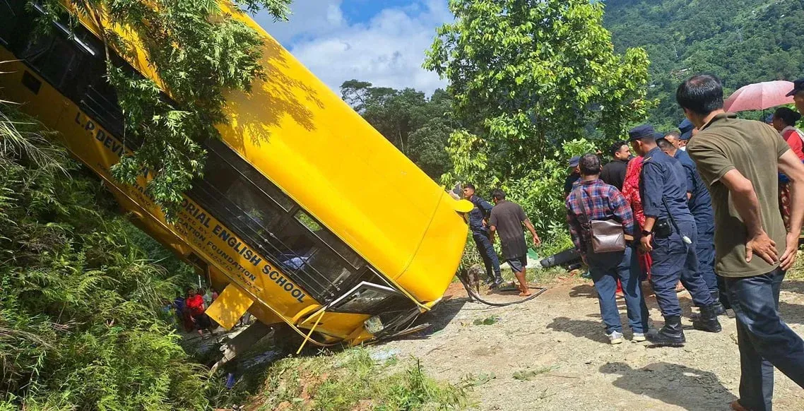 पोखरा स्कुल बस दुर्घटनाः आमा र छोराको मृत्यु, २८ जना घाइते