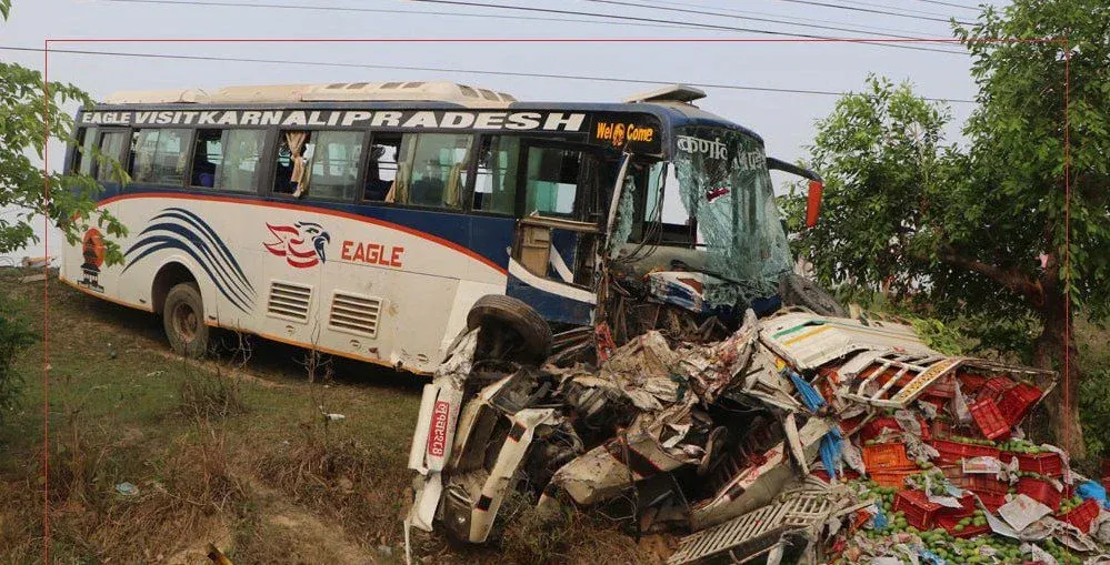 कपिलवस्तुको बुद्ध भूमि झडुलामाईमा बस र पिक अप ठोकिँदा १ को मृत्यु ८ जना घाइते