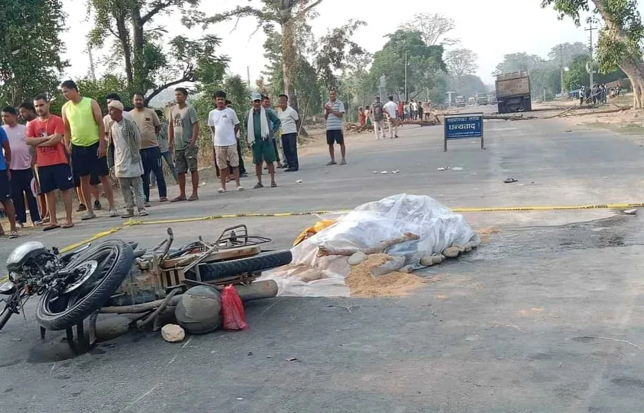 बाँकेमा टिपरको ठक्करबाट मोटरसाइकल चालकको मृत्यु, सडकमै शव राखेर राजमार्ग अवरुद्ध