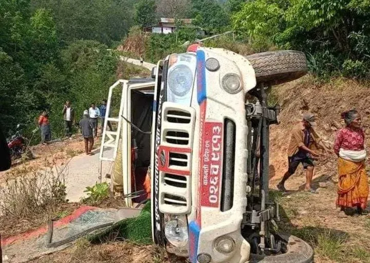 दोलखामा मलामी सवार गाडी दुर्घटना हुँदा १४ जना घाइते, ९ को अवस्था गम्भीर