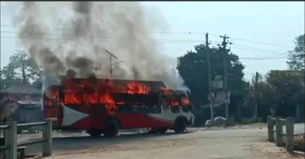 सर्लाहीमा बसको ठक्करबाट साइकल यात्री घाइते, स्थानीयद्वारा बसमा आगजनी