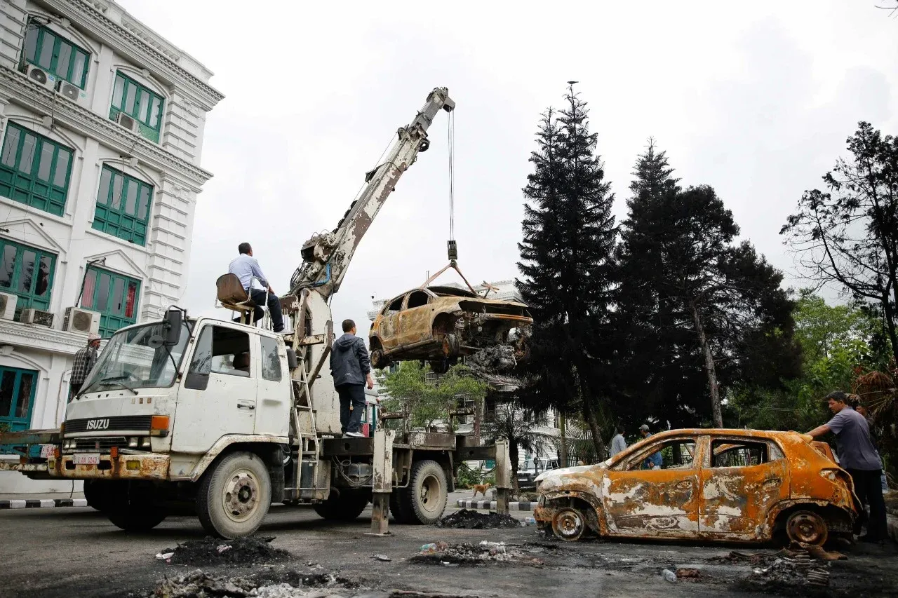 सिंहदरबारबाट आगजनी गरिएका सवारीसाधन हटाइँदै