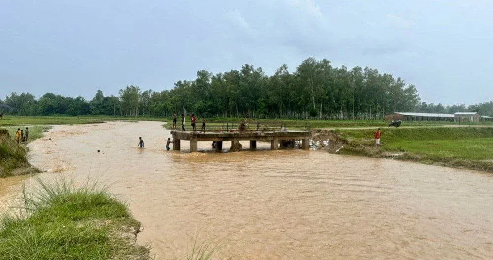 सिरहाको गोलबजारमा पाँच महिनामै सामान्य बाढीले बगायो पुलको बाँध