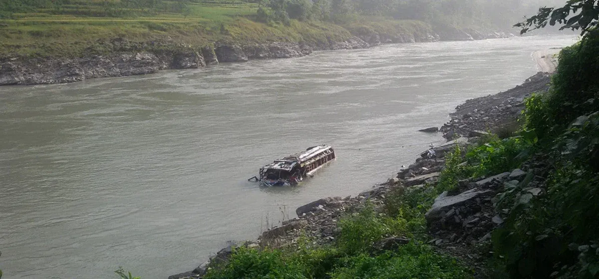 नारायणगढ-मुग्लिन सडकमा पहिरोले दुई यात्रु बस बगे