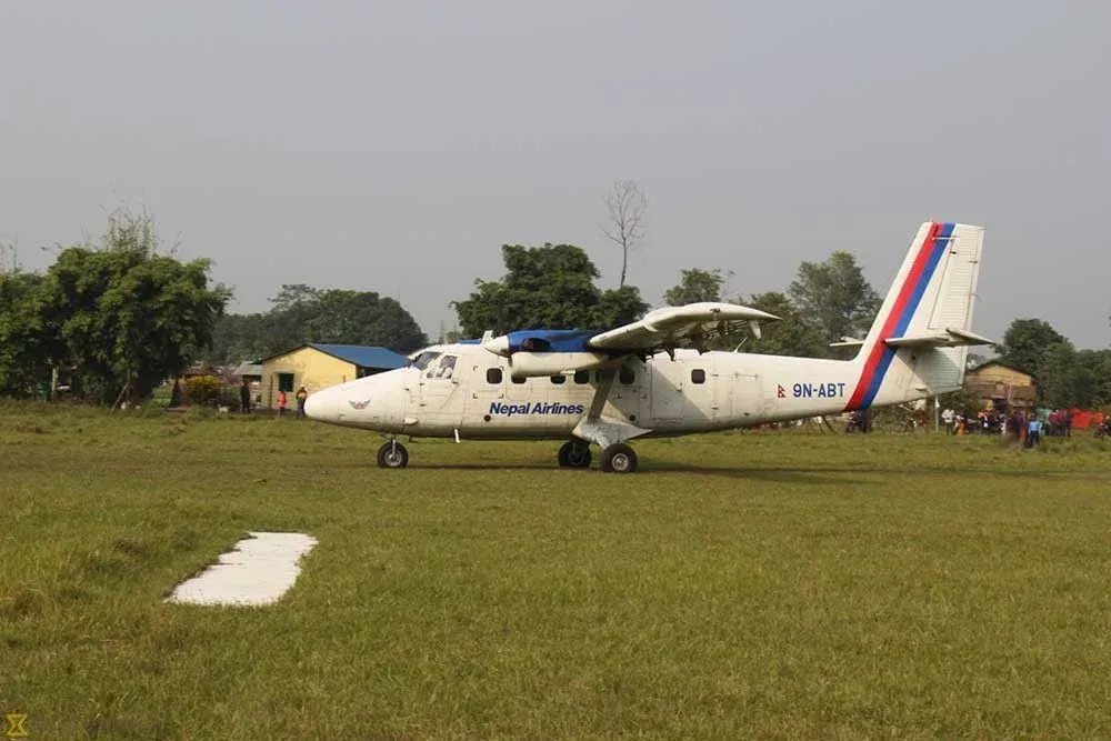 चितवनमा रहेको मेघौली विमानस्थलको धावनमार्ग स्तरोन्नति गरिँदै
