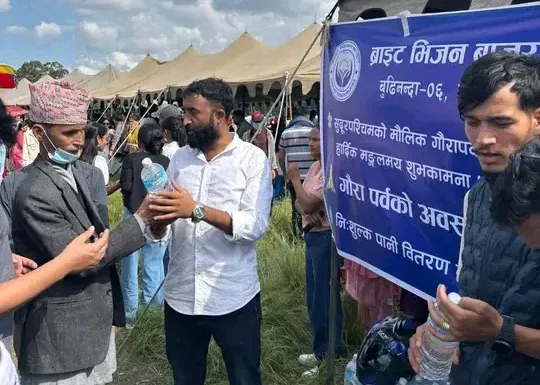 ब्राइट भिजन बाजुरा द्वारा गौरा पर्वको अवसर टुडिखेलमा निःशुल्क पानी वितरण