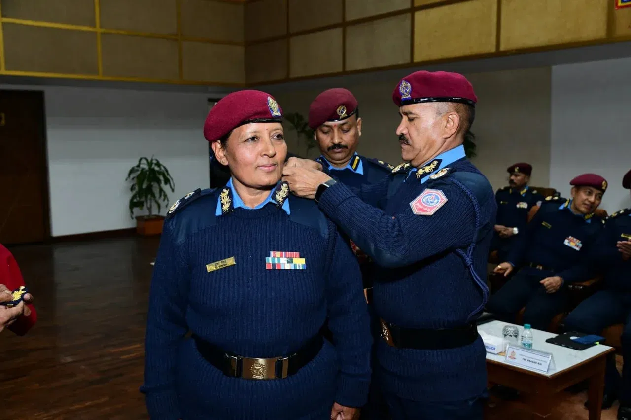 सात जना प्रहरी अधिकृत दर्ज्यानी चिह्नद्वारा सुशोभित