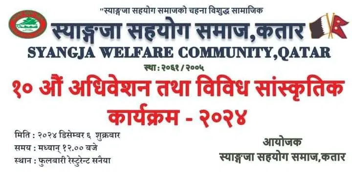स्याङ्जा सहयोग समाज कतारको १० औ अधिवेशन अगामी ६ डिसेम्बरमा हुँदै