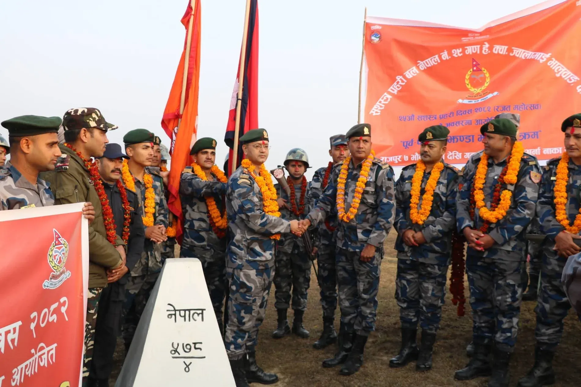 सशस्त्र प्रहरीको पूर्व–पश्चिम झण्डा मार्च अभियान टोली विजयनगर कपिलवस्तु