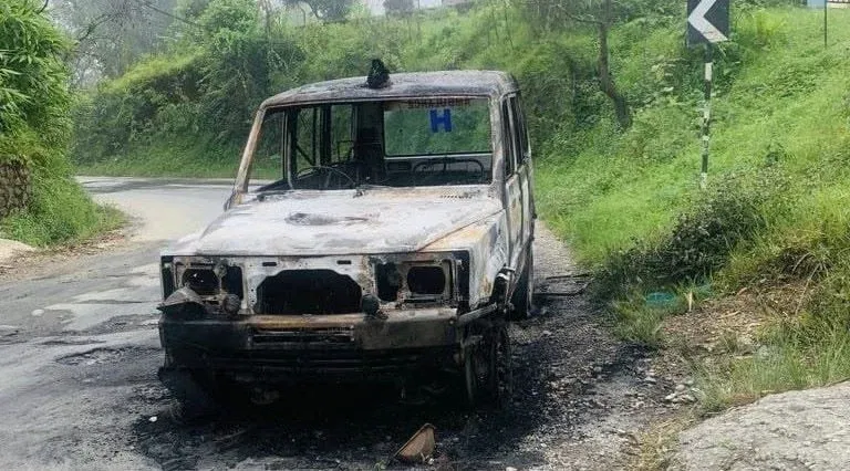 स्याङ्जामा गएराति बिरामी बोकेको एम्बुलेन्समा आगलागी