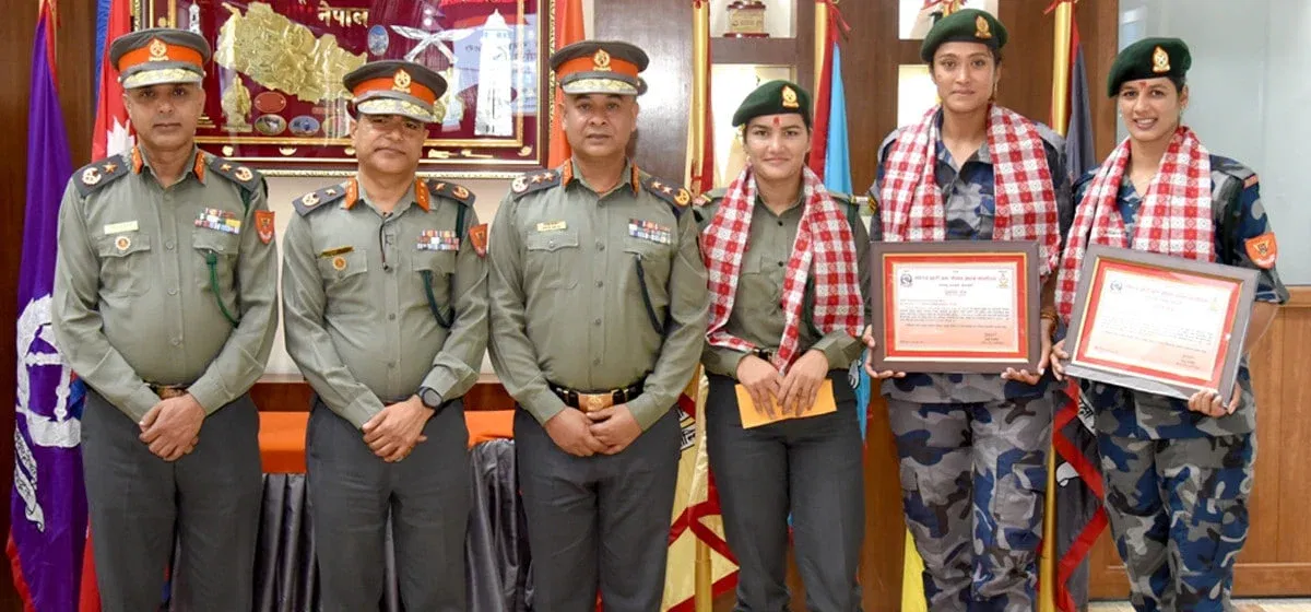 एपीएफले गर्यो तीन जना महिला भलिबल खेलाडीलाई सम्मान