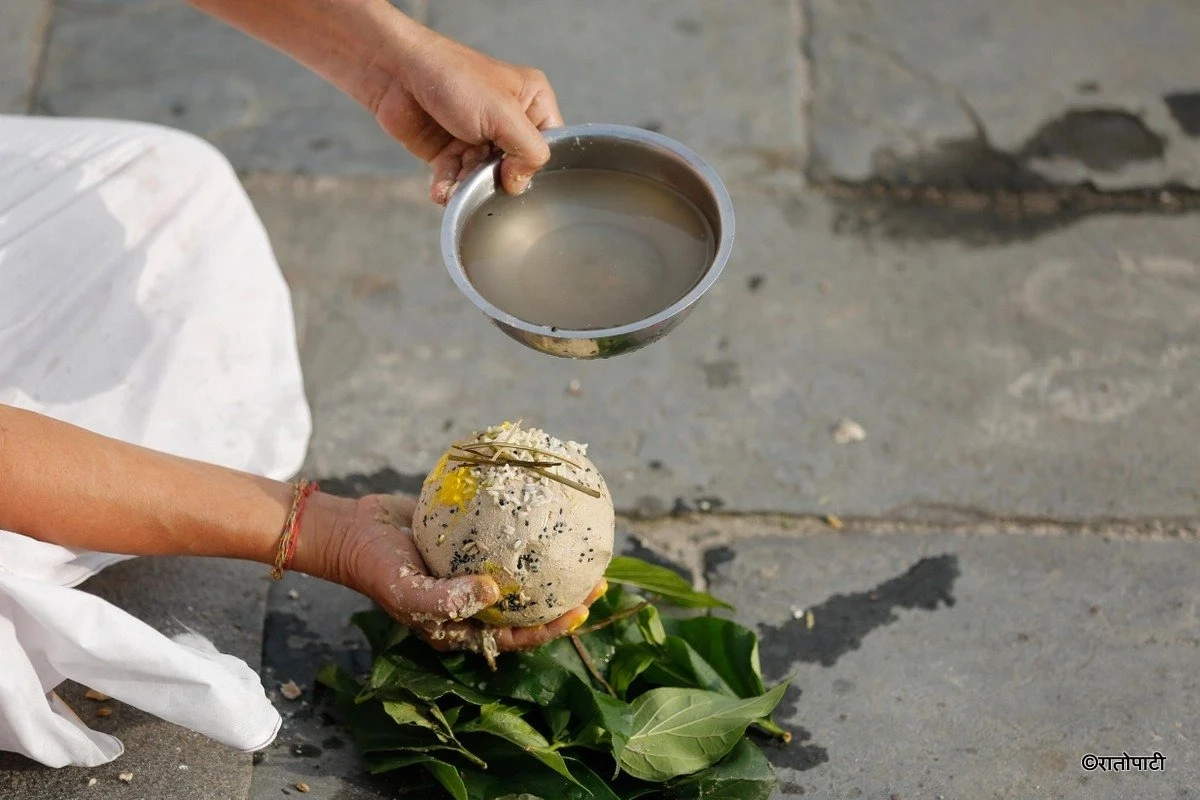 हनुमानघाटमा स्रोहश्राद्ध गर्नेको घुइँचो