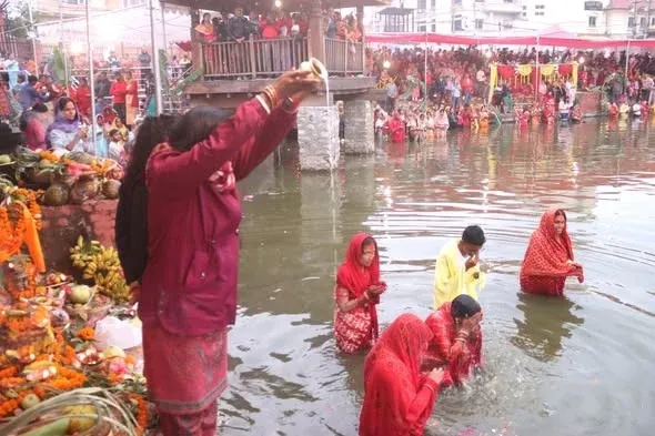 आज छठ पर्वको मुख्य दिन: अस्ताउँदो सूर्यलाई विधिपूर्वक अर्घ्य दिइँदै