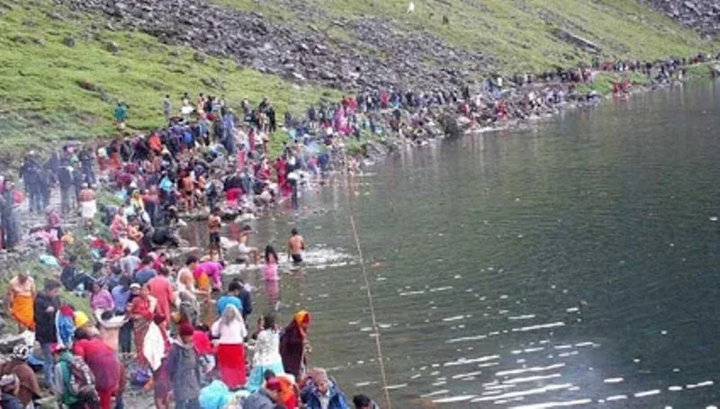 गोसाइँकुण्डमा स्नान गर्दै भक्तजन