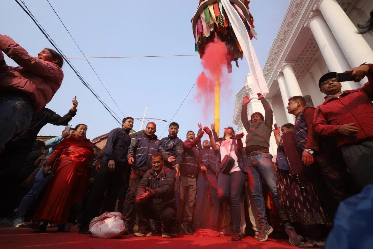 काठमाडौंको बसन्तपुरस्थित होलीको चीर ठड्याइयो, सुरु भयो होली