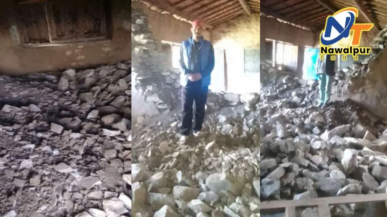 विद्यालय कोठाको पर्खाल भत्किएको हुँदा पठनपाठन समस्या