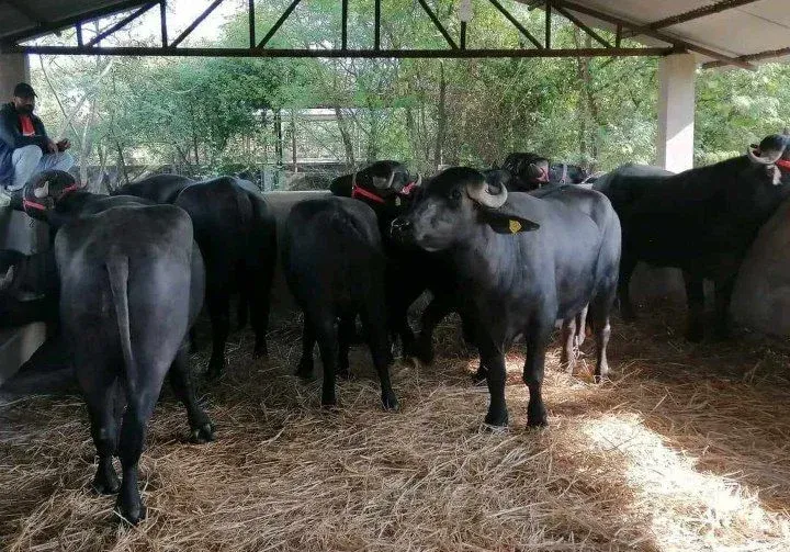 पोखरामा ल्याइएका ७ वटा मुर्रा राँगालाई फूलमालासहित स्वागत