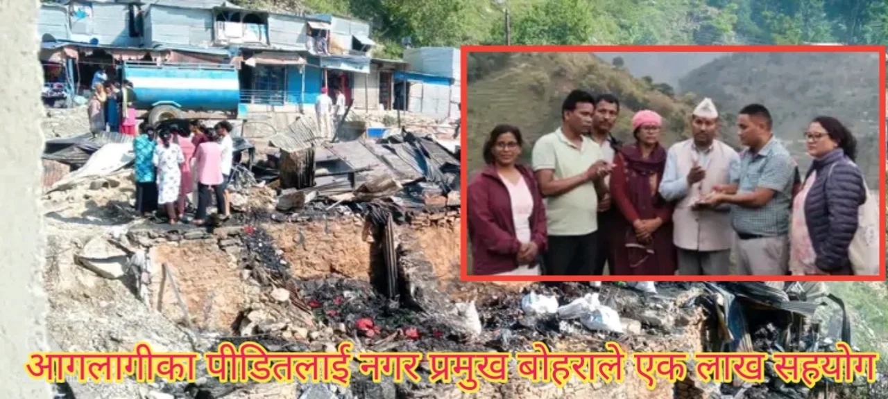 आगलागीका पीडितलाई नगर प्रमुख बोहरा द्वारा एक लाख सहयोग