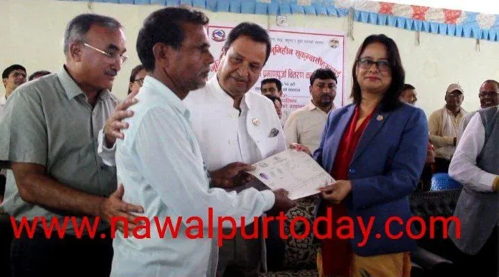 बर्दघाटबाट भूमिहीन दलितलाई लालपुर्जा वितरण सुरु
