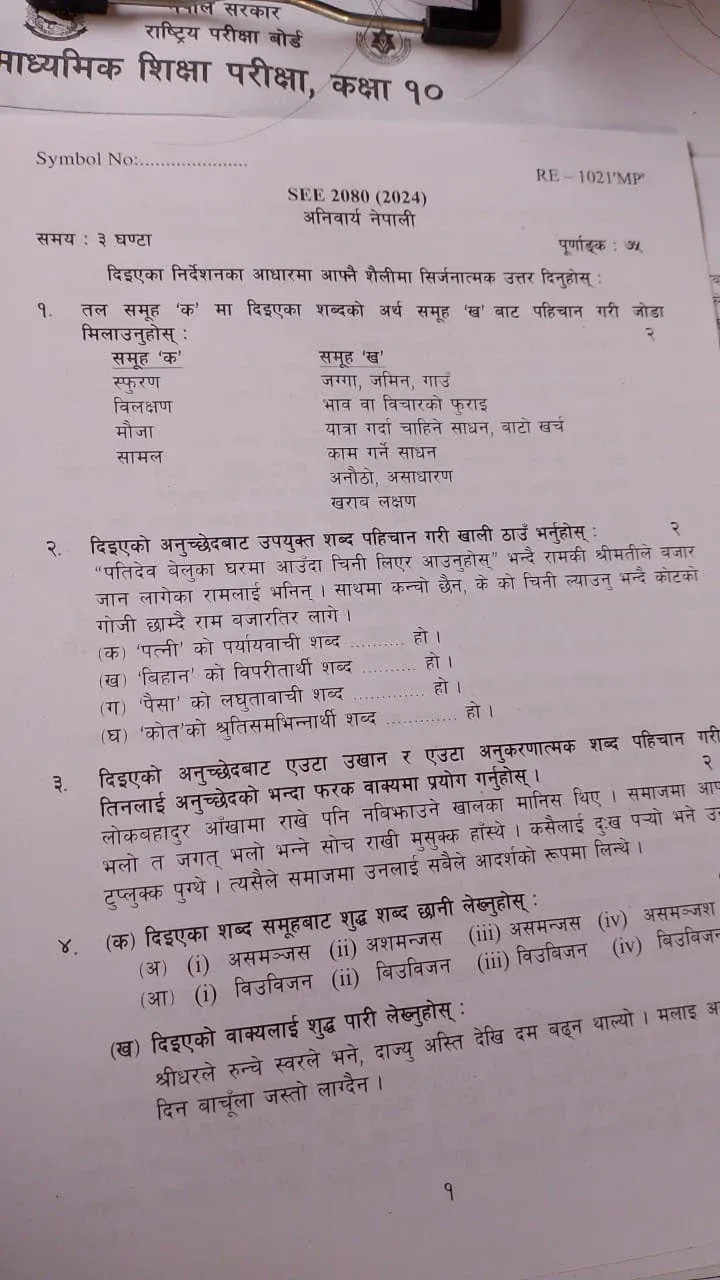 सिराहामा एसईई नेपाली विषयको प्रश्नपत्र बाहिरियो