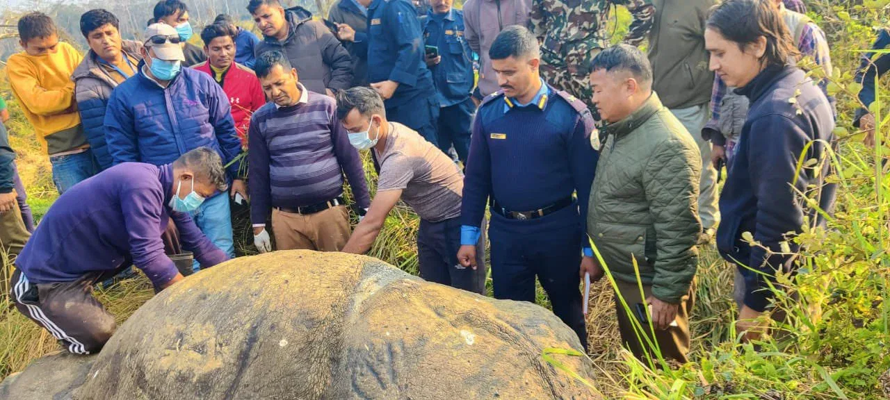 राप्ती नदीको किनारमा भाले गैंडा मृत फेला