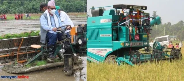 चितवनको माडीमा सामूहिक चक्लाबन्दी खेतीः मन्त्री आफैले रोपेको धान आफै काटे