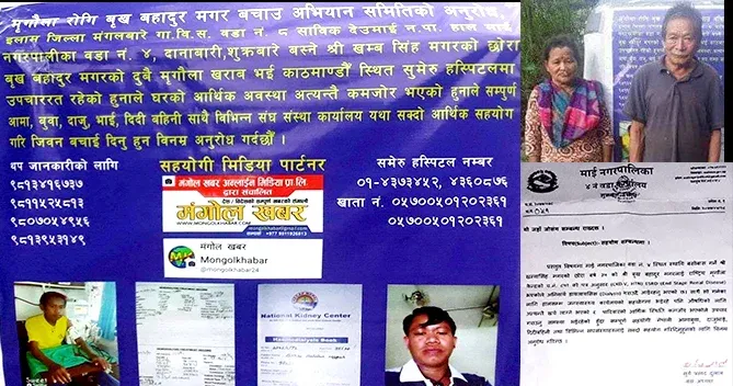 दुबै मृगौला फेल भएका बृखबहादुर मगरलाई सहयोग गरौं