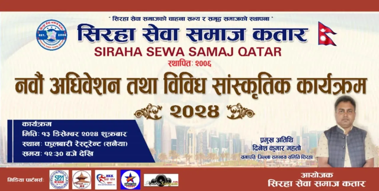 सिराहा सेवा समाज कतारको ९ औ अधिवेशन १३ डिसेम्बरमा हुँदै