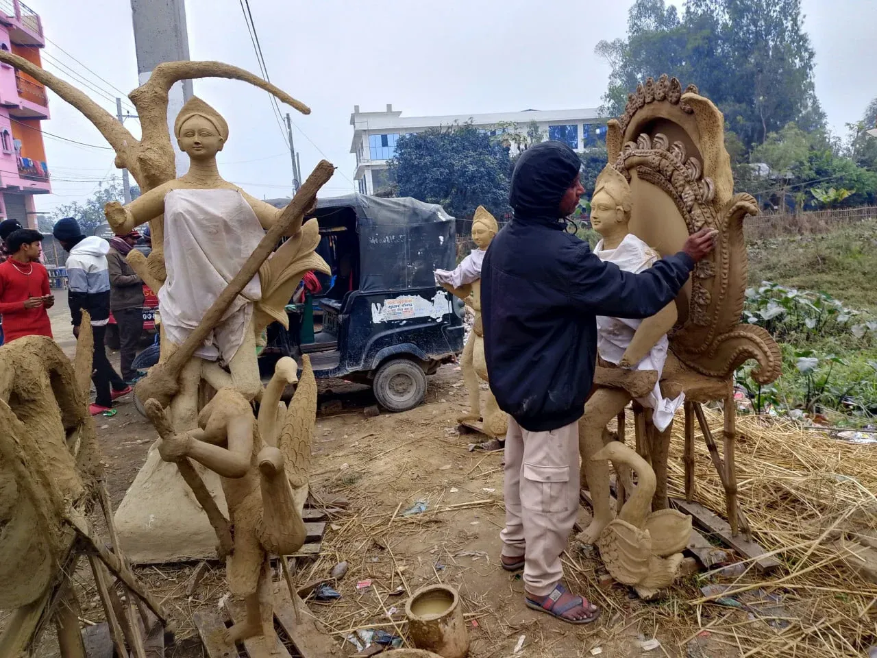 सरस्वती पूजा आउनै लाग्दा मूर्तिकारहरू मूर्ति बनाउन व्यस्त