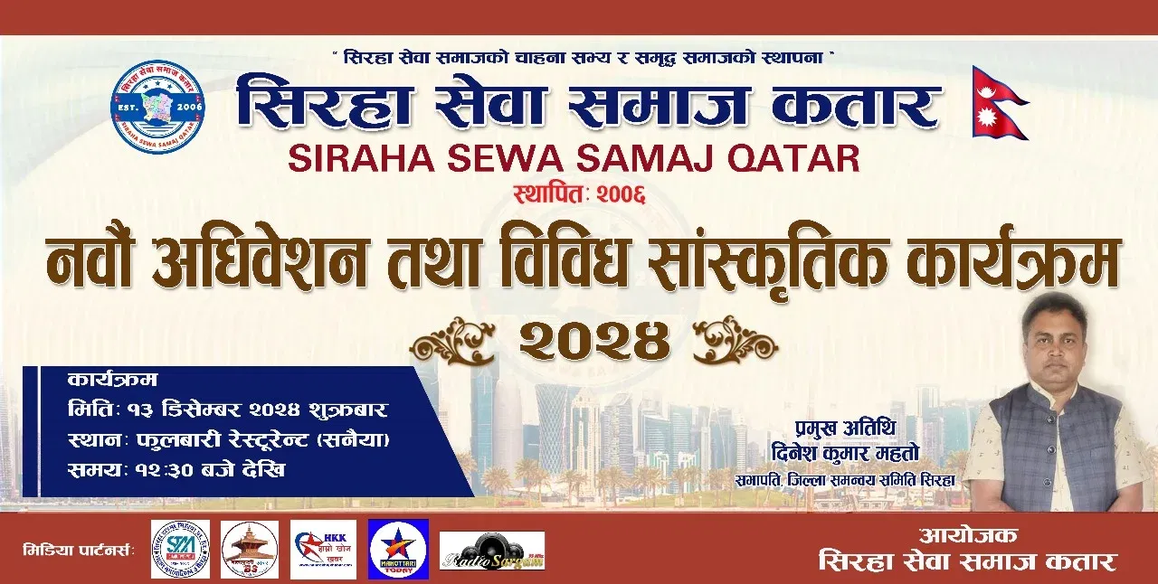 सिराहा सेवा समाज कतारको नवौ अधिवेशन शुक्रबार हुँदै