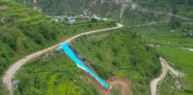 बाजुरामा राजमार्गको पहिरो रोक्न त्रिपालको साहारा