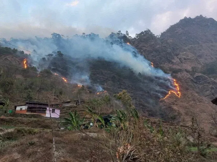 जङ्गलमा डढेलो लागेपछि गाउँ पसे जनावर