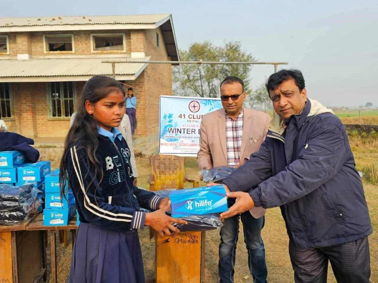 श्री नेपाल स्काउट निमावि ईटियाहीका १३४ जना विद्यार्थीलाई स्विटर र जुत्ता वितरण