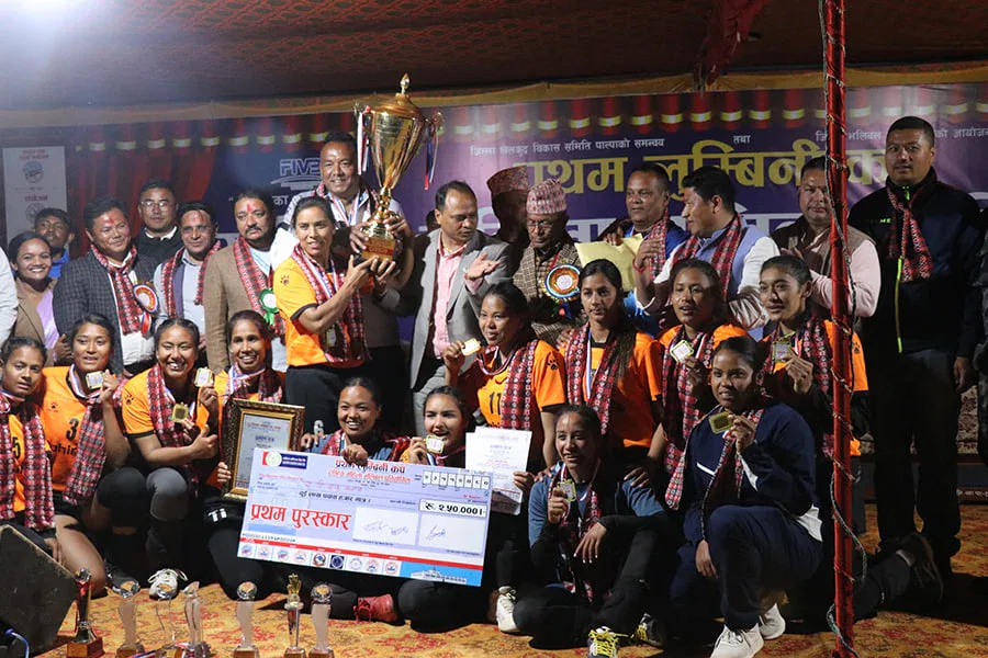 पाल्पा रामपुरमा सम्पन्न प्रथम लुम्बिनी कप महिला भलिबलको उपाधि एपीएफ क्लबलाई