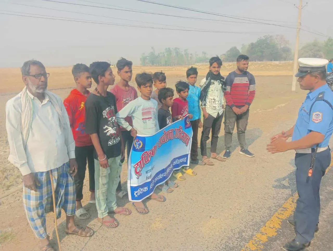 ट्राफिक प्रहरी कार्यालय तौलिहवाद्वारा ट्राफिक सचेतना कार्यक्रममा तिब्रता