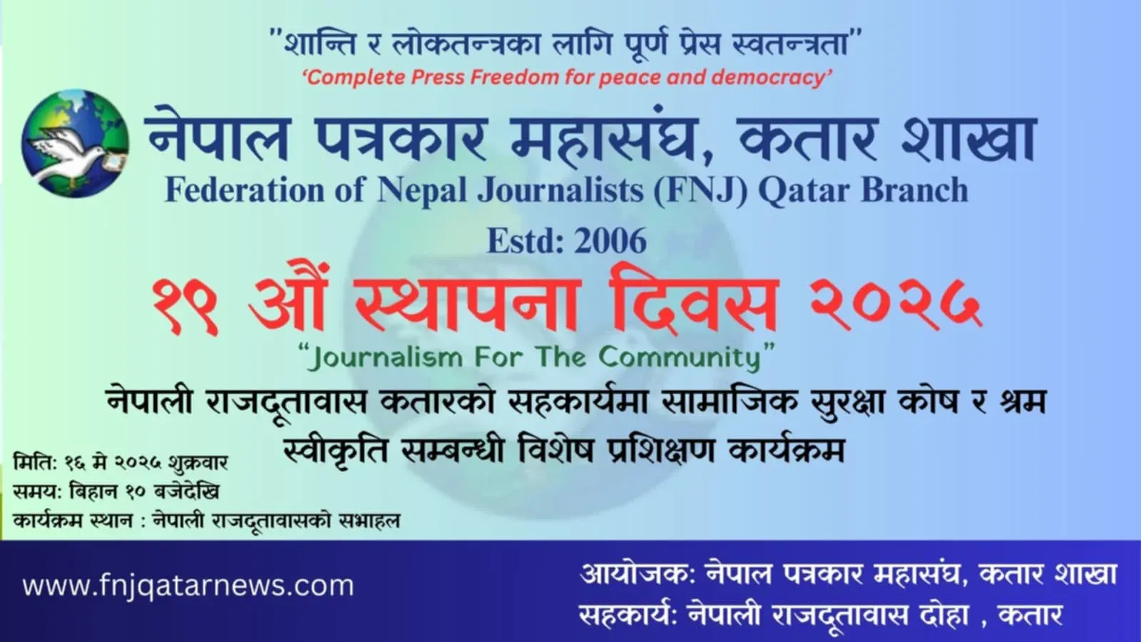 नेपाल पत्रकार महासंघ कतारले विविध कार्यक्रम गरि १९ औ स्थापना दिवस मनाउने