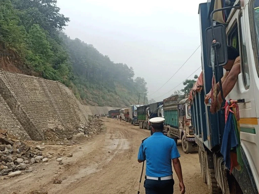 सुक्खा पहिरो खस्दा दाउन्नेमा यातायात सेवा अवरुद्ध