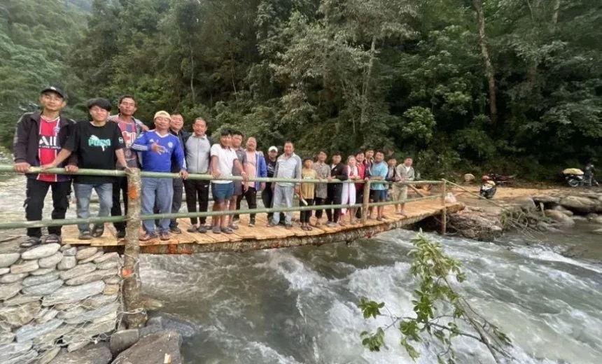 श्रमदानबाट काठको पुल निर्माण